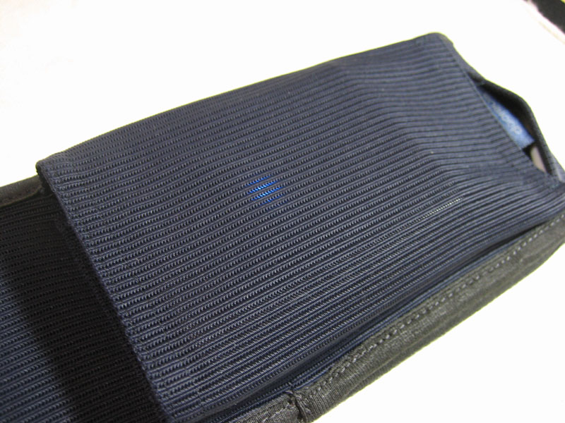 説明書には電源ボタンを押してから、バッテリーをベルトに収納するように書いてありますが、ベルトにバッテリーを収納した状態でベルトの上から電源ボタンを押すことも出来ます。ベルトのポケットにバッテリーを入れた状態でも、動作確認LEDランプは確認可能です。(参考:下の写真)