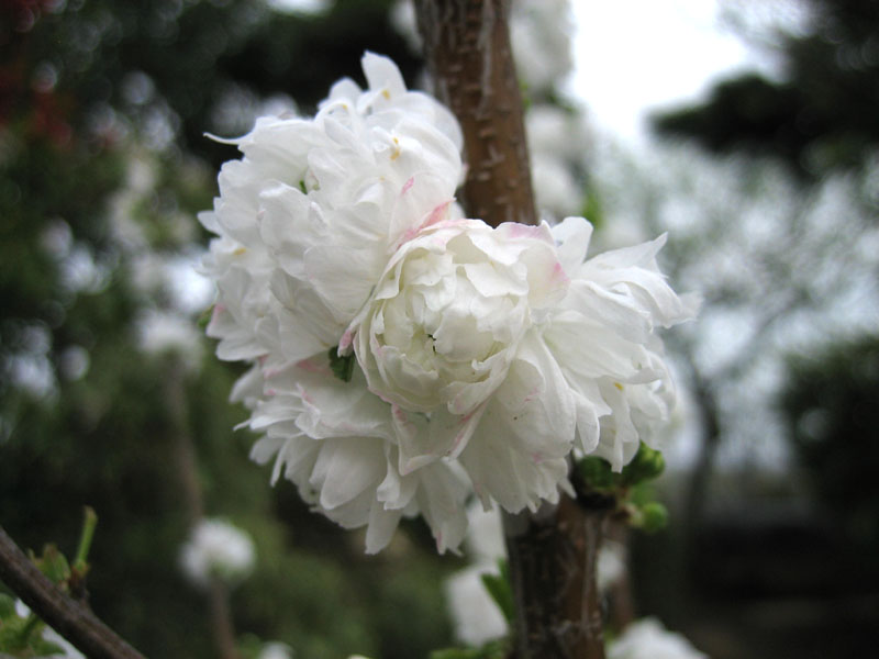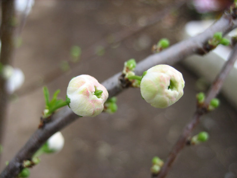 正確な名称は、林生梅(リンショウバイ)で、一重咲きのものを庭梅(ニワウメ)、八重咲きのものを庭桜(ニワザクラ)と読んでいるだけだそうです。