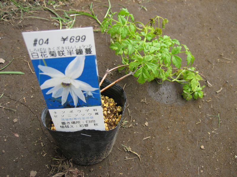 先日、ホームセンターの高山植物コーナーに置かれていた、白花菊咲半鐘蔓(しろばなきくざきはんしょづる)を買って来ました。