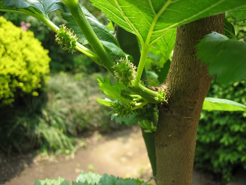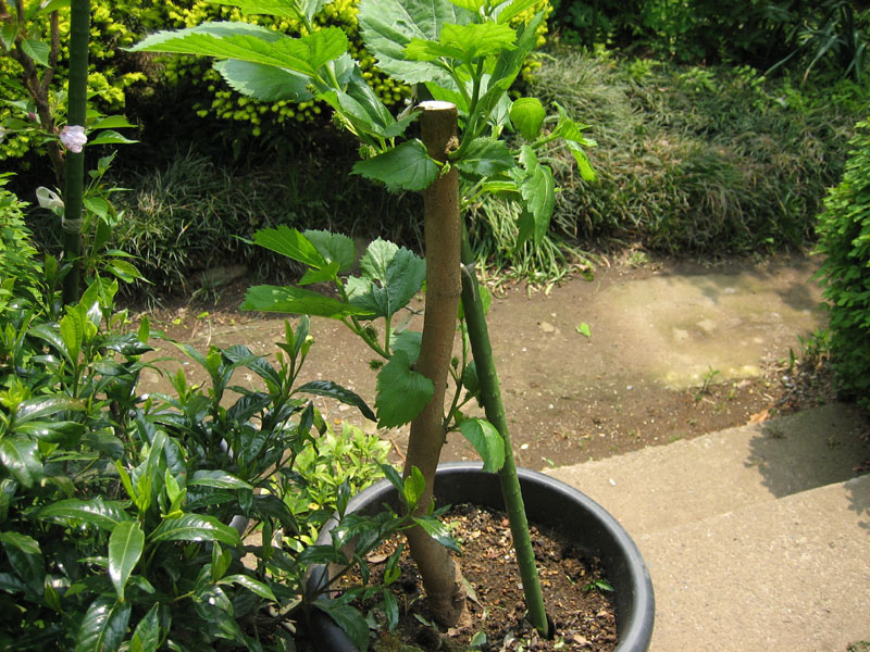 鉢植えで育てていたのですが、買ってきた当時の苗と比べて驚くほど幹が太くなりました。大体7~10倍位は成長したでしょうか。しかも、去年冬に落葉するまでの、たった約6ヶ月分の成長です。凄いですね桑の成長スピードは。