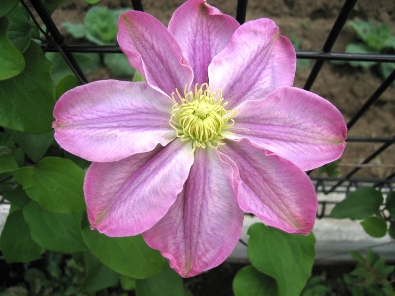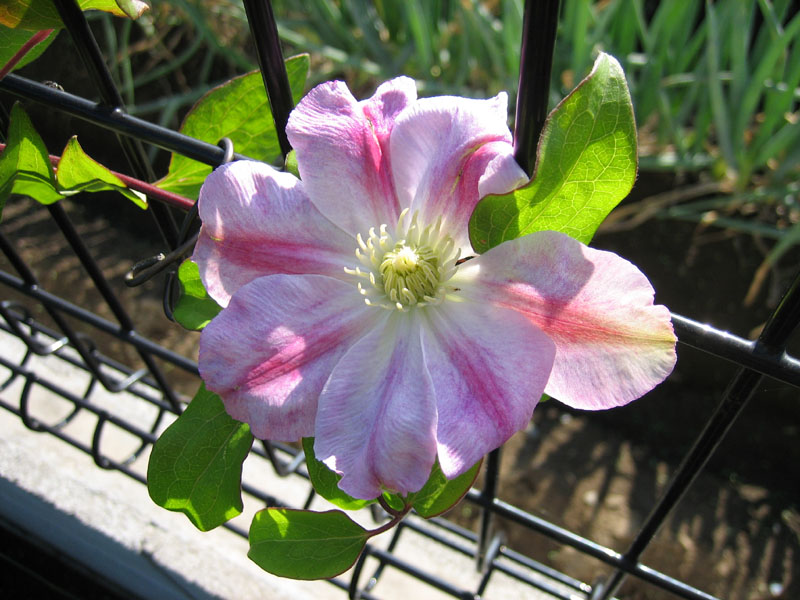 植えつけて2年目となる、クレマチス、テッセン ピンクレッドが開花しました。