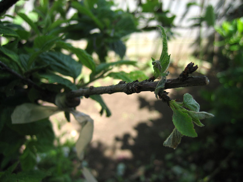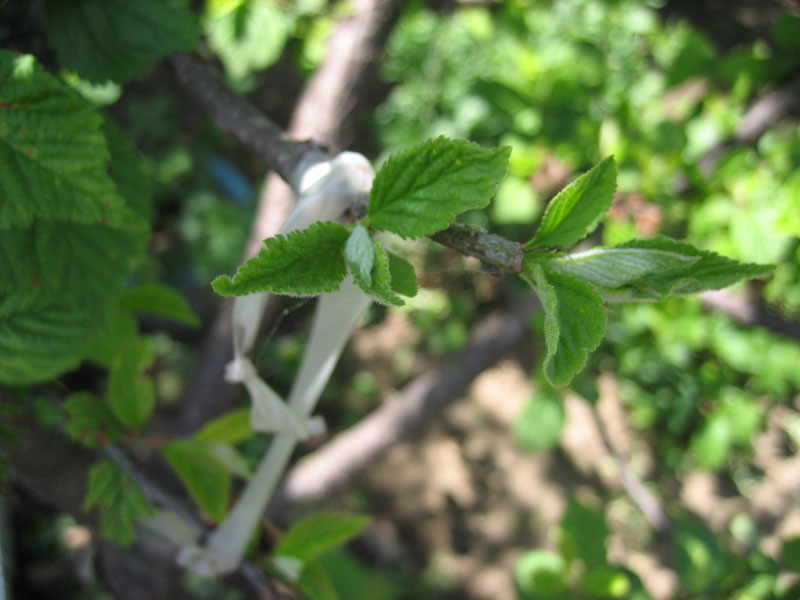 赤実ユスラウメに白実ユスラウメを高接ぎしたのですが、2箇所程成功した可能性が出てきました。