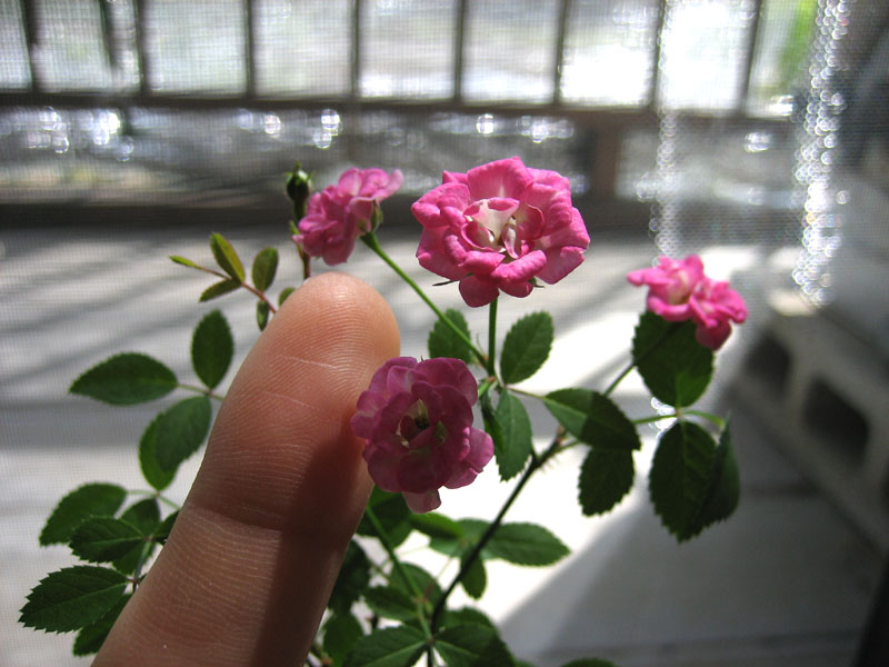 去年小さな苗の状態で買ってきたミニバラ、リトルウッズが開花しました。