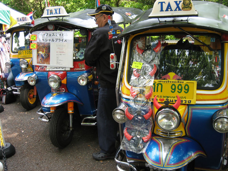 タイのタクシーが展示されていました。しかも、カラフルな三輪バイクのタクシー『トゥクトゥク(TUK TUK)』は購入可能となっており、値段は、タイ・フェスティバルスペシャルプライスで、通常価格1,380,000円の所を1,150,000円(税込)で販売していました。