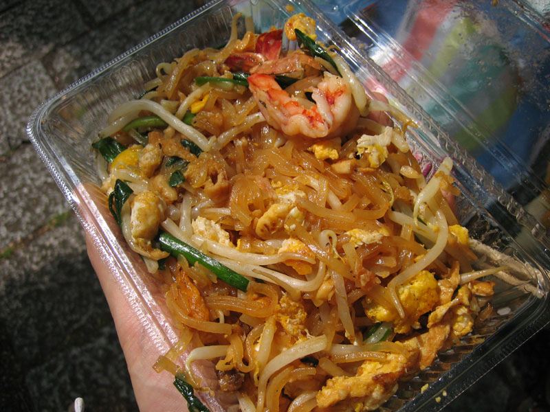 パッタイは、ビーフンと、卵と、もやしと、ニラと、砕いたピーナッツ?、それと、エビが入ったタイ風焼きそばで、、それらが酸味のあるソースでまとめられた、とても南国らしいサッパリとした麺料理でした。個人的には、温かい状態よりも冷えたの方が美味しいと思います。
