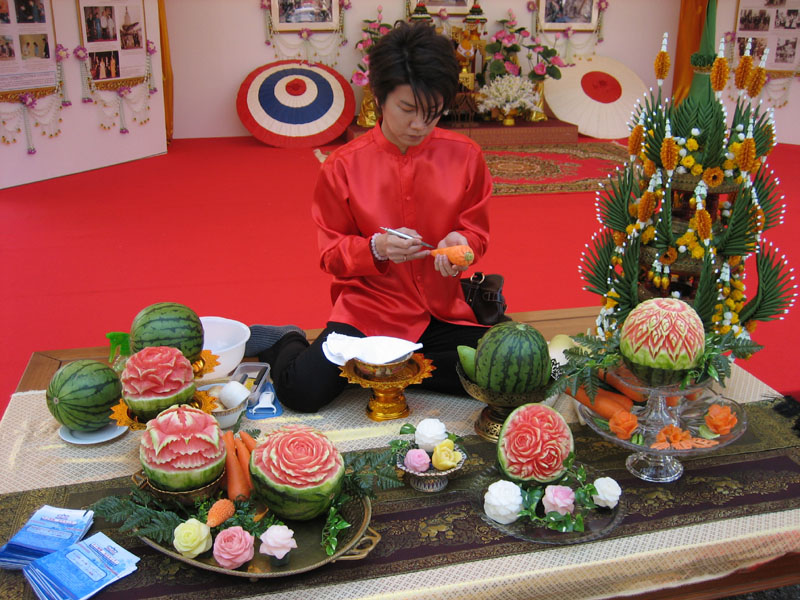 伝統舞踊を披露するステージがあったり、果物などに彫刻刀で彫刻する、『カービング』のデモンストレーションがあったりして、皆、足を止めていました。
