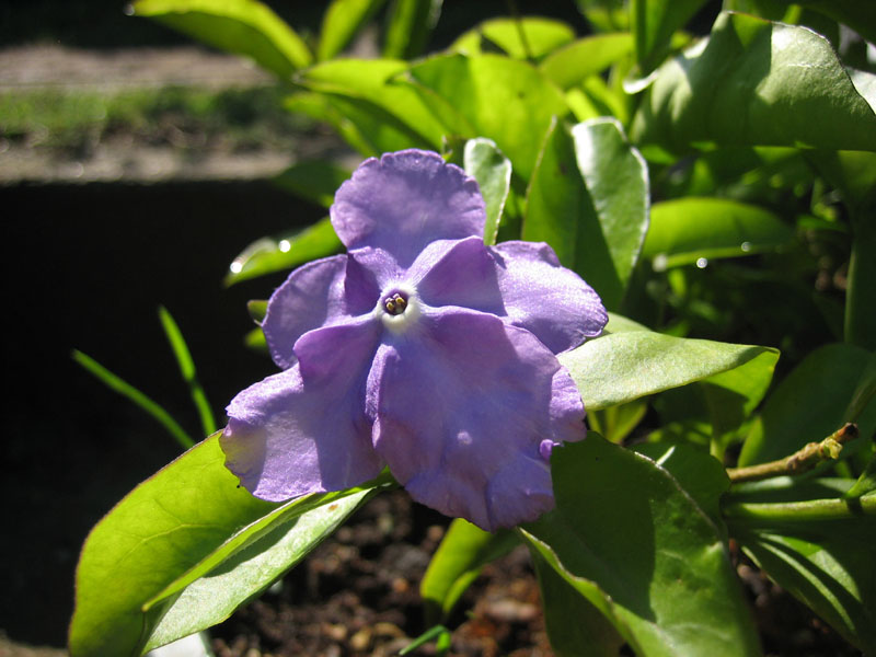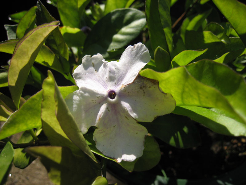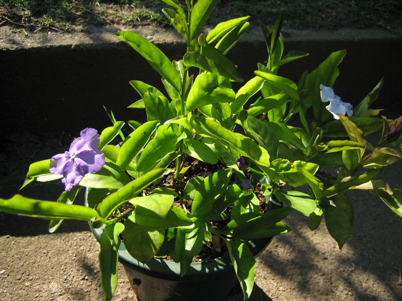 去年小さな苗で買ってきた、南アフリカ原産の花木、ニオイバンマツリが買ってきてから約2~3倍のサイズに成長し、開花しました。