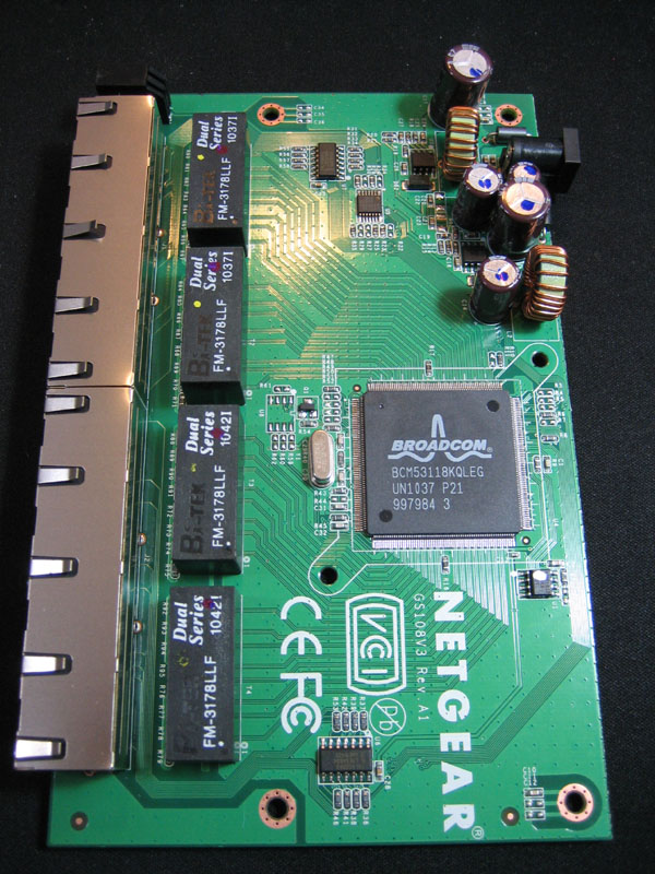 2011-10-03追記、この記事に寄せられたLAN_eさんの追加情報により、複数のGS108v3に使われている日コン、Eliteのコンデンサの使用数の割合、使用箇所が、個体によってバラバラだということが判明しました。