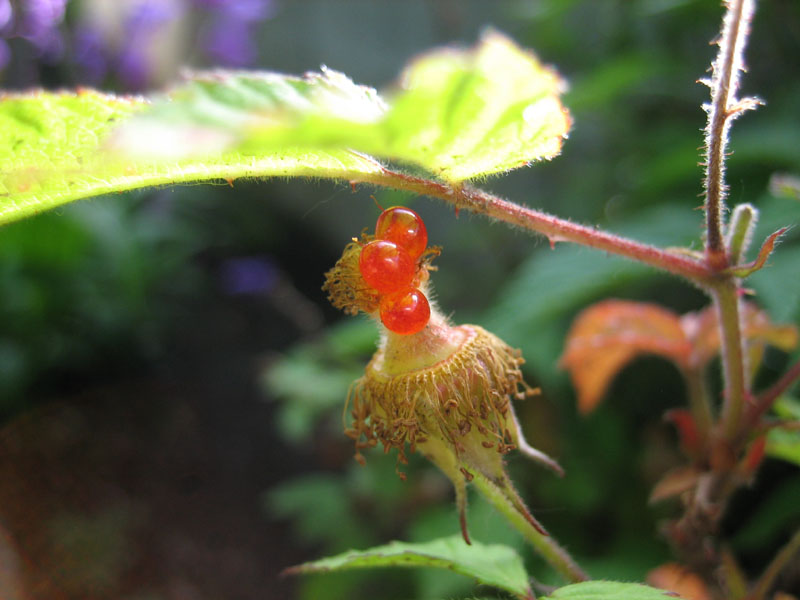 今年は全く実が付かなかったと思っていたラズベリーのマイラビットに、ほんの少しだけ実が付いている事に今朝気付きました。