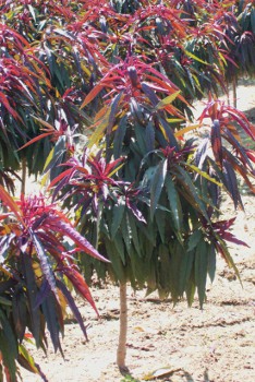 植え付けには、水はけの良い酸性土壌を好むと書いてあり、葉の色以外、特徴はボナンザピーチと似通っていますが、ボナンザピーチとの大きな違いは栽培可能地域の範囲で、緯度で言うと、およそ北緯45°(N45°)というかなり寒い地域から南まで栽培可能な範囲となっています。