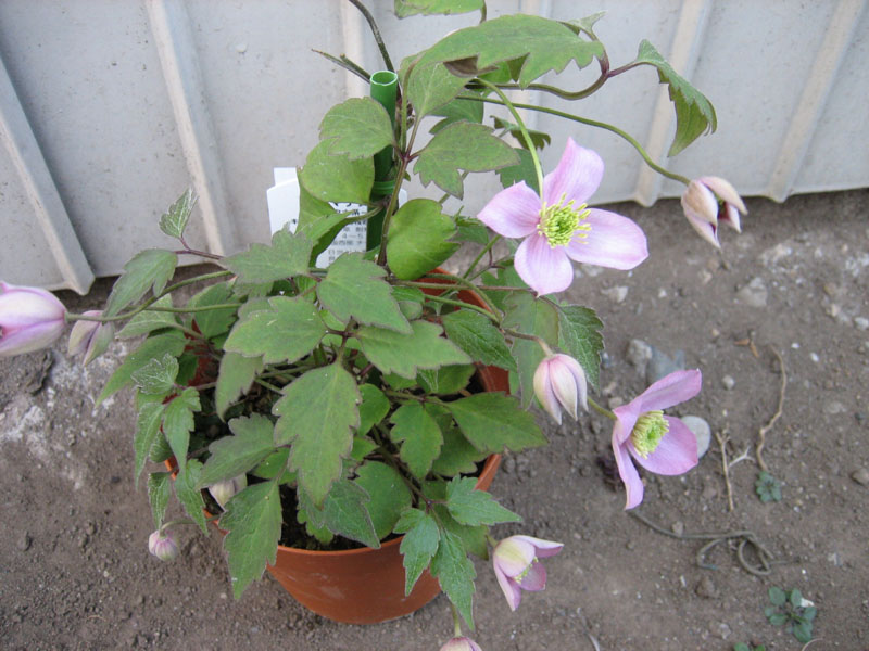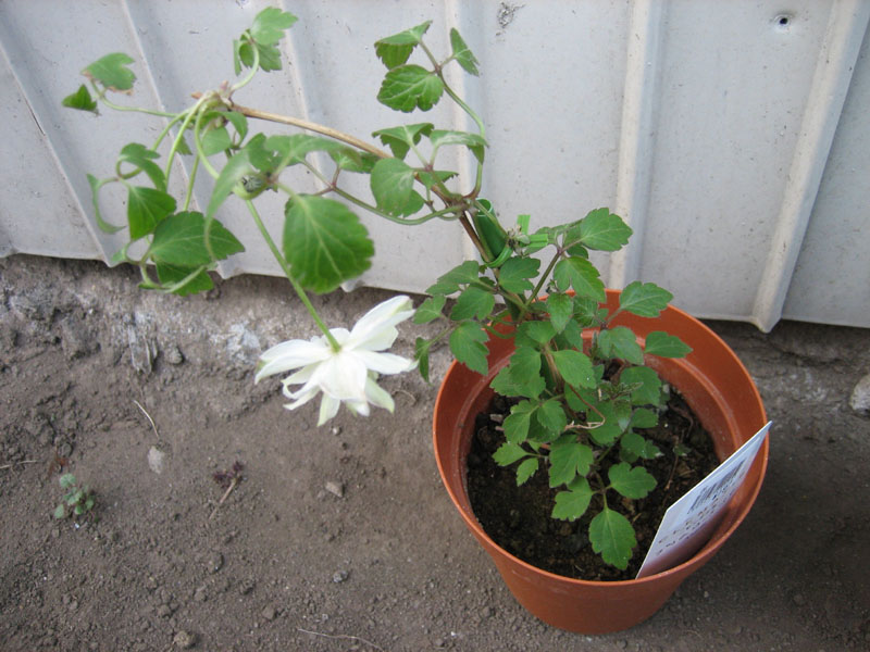 多分2年生苗。やたらと鉢植えが安い店で2種類程買ってきました。1ポット198円です。クレマチスは大変種類が多く選ぶのも悩みます。