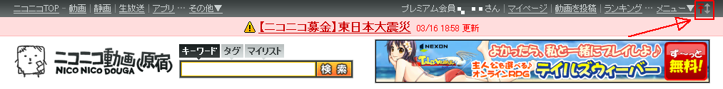 Home > ブログ > 覚え書き(PC関連) > ニコニコ動画の上部メニューバーを自動固定するオミトロンフィルタ