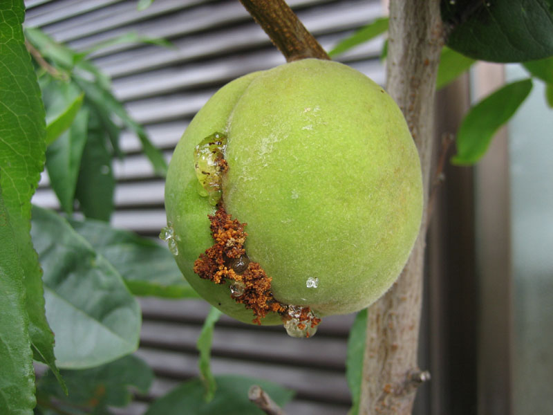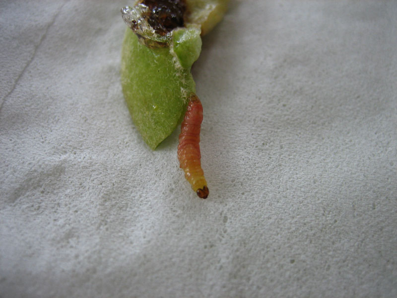 なんという虫の幼虫ですかね・・・。去年プラムの実で同じじような被害があったのですが、同じ虫でしょうか。来年は対策を考えないとならなさそうです。