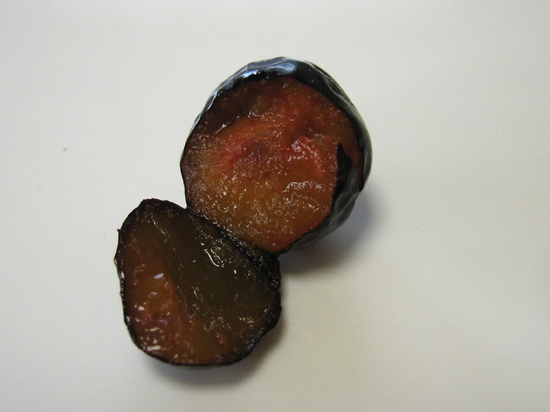 実の特徴についてですが、大きさは銀杏程度のサイズで、重さは1.7g、果皮は濃紫色の為に黒く見え、果肉は黄色~オレンジ色。