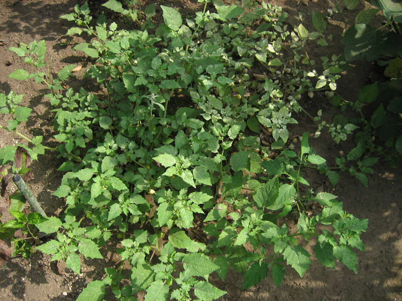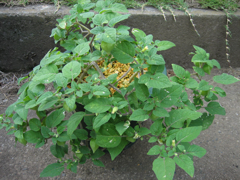 去年育てていた食用ホオズキですが、こぼれ落ちた種が春先に芽を出し、実が収穫できるまで大きくなりました。