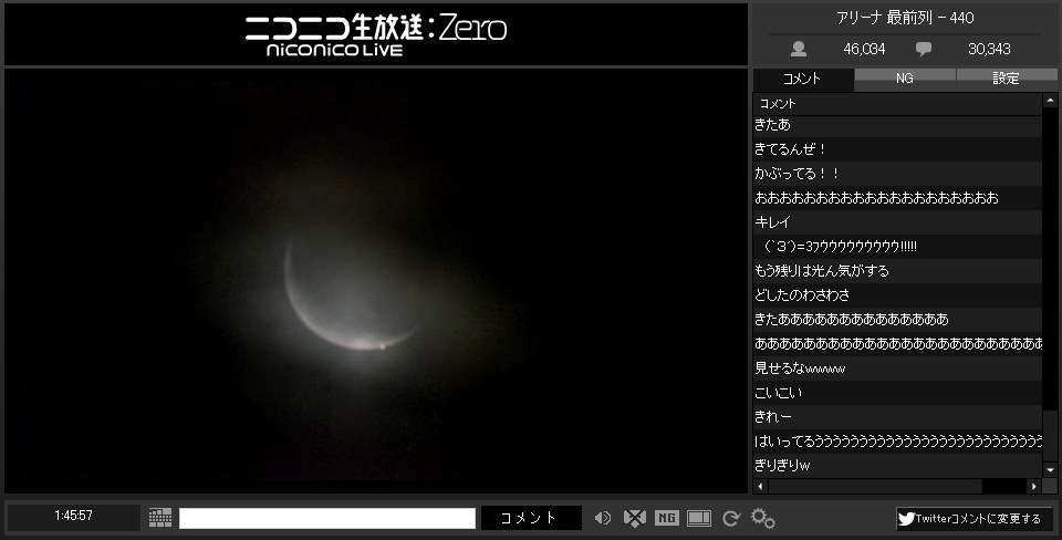 金星食のライブ配信は、ニコ生公式でやっていたのでニコ生公式で視聴。