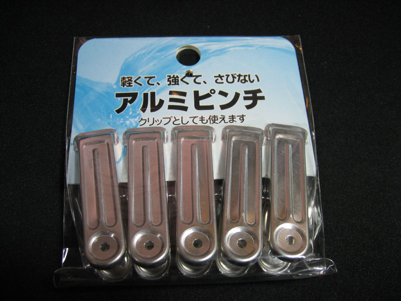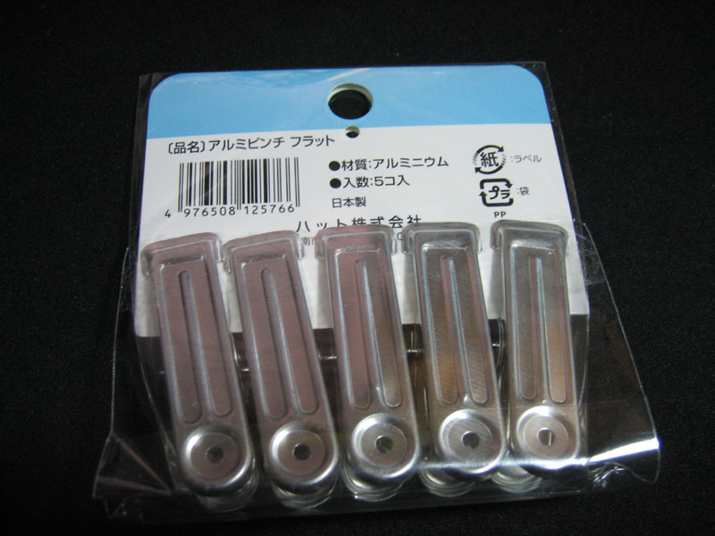 ※2016/11/23追記:記事は、2011年時のものです。この後、ダイソーなど他の100円ショップでもポリカーボネート製、アルミ製の洗濯バサミの取り扱いが増えたと記憶しています。