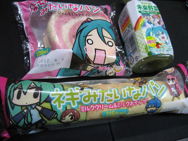 買ってきたのは『はちゅねミクのほっぺみたいなパン』、『ぽっぴっぽー未来野菜』、『ネギみたいなパン』です。