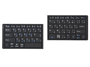 色は白と黒、値段は¥9,765(税込)で10月発売上旬発売。Bluetooth3.0対応、リチウムイオンバッテリー内蔵で最大3ヶ月間使用可、マグネットの力で左右のキーボードがくっつきます。また、4つのキーを、ファンクションキーと同時に押すことで、簡単にAndroid、iPhone/iPad、Windowsパソコン、Macに切り替えられるようです。