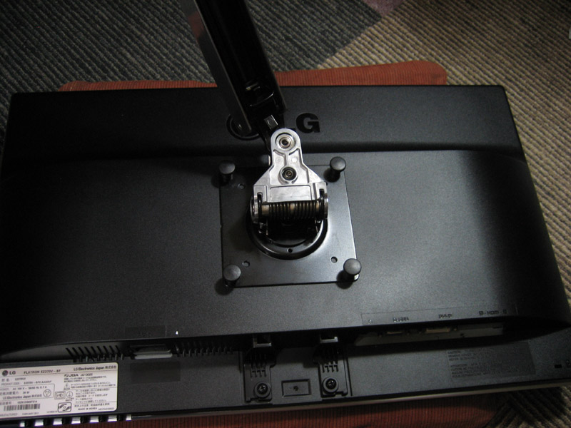 上記写真右:LG E2370V-BF 23インチモニター(VESA 100x100mm)