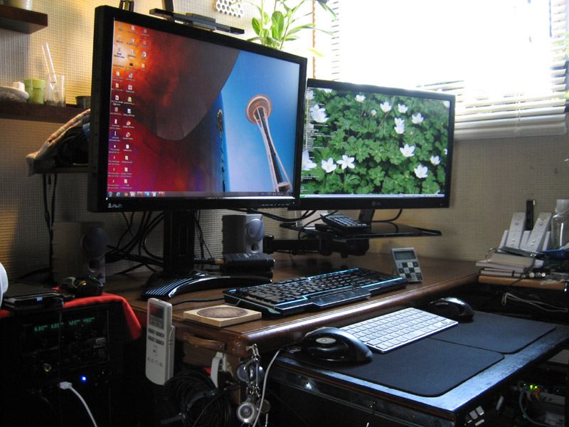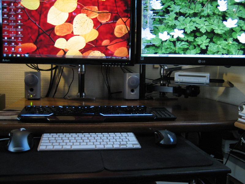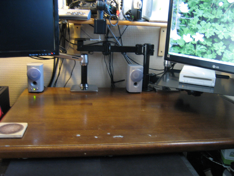 机の上がゴチャゴチャしている為、変化がイマイチ分かりにくいとは思いますが、スタンドが無くなった開放感は凄いです。