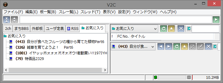 2chブラウザのV2Cを使っているのですが、サブPCで使っていたV2Cのお気に入りを、メインPCのV2Cのお気に入りにまとめようとした所、V2Cにお気に入りのエクスポートが無いことに気付き、困ってしまった事がありました。