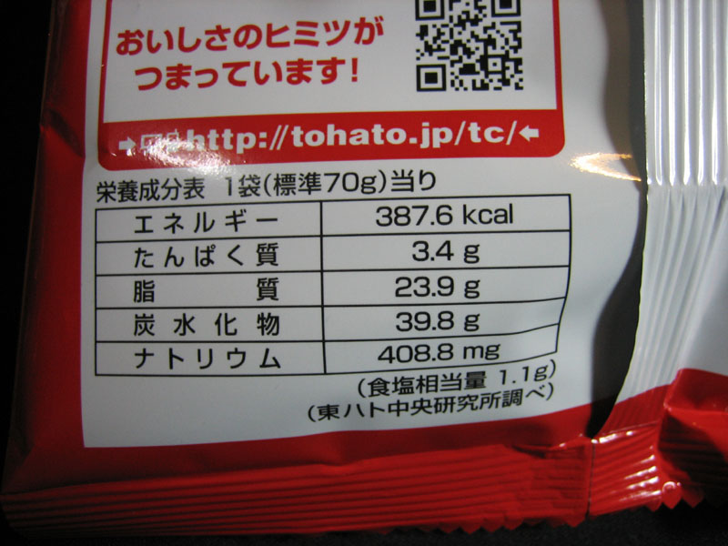 エネルギー387.6kcal、香ばししょうゆ味とほぼ一緒です。また、うましお味と言っても塩分が高いわけでもなく、成分表示は香ばししょうゆ味とほとんど変わりません。