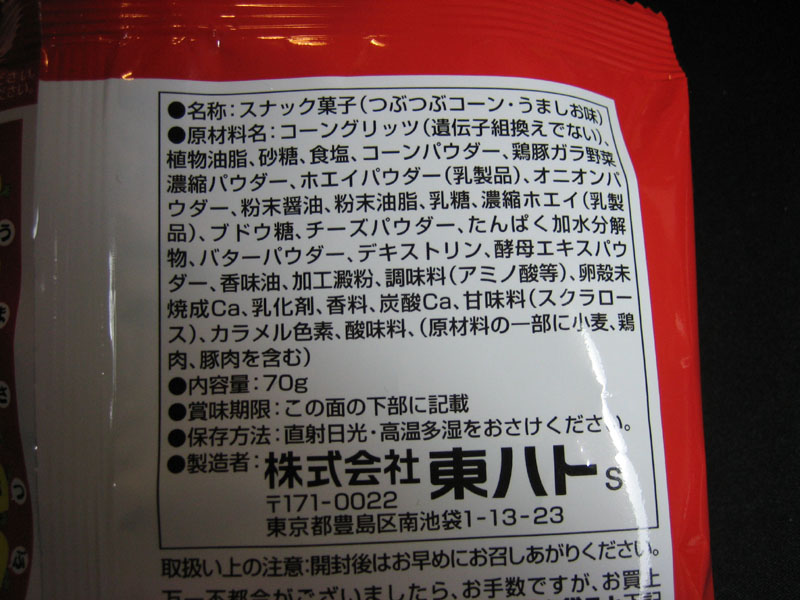 Home > ブログ > レビュー - 食べ物レビュー・料理 > 東ハト、つぶつぶコーン うましお味も食べてみた。