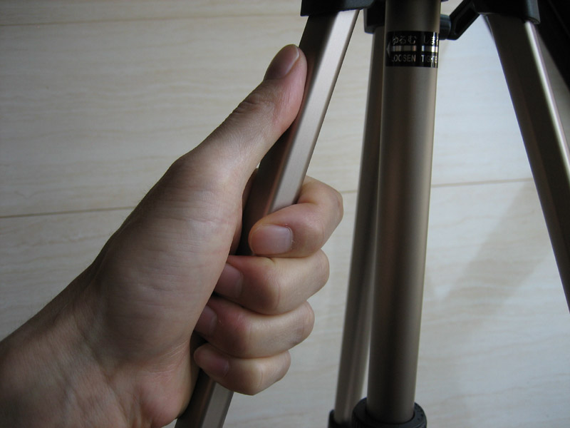 脚は3段式で、4段式よりも脚を伸ばす手間が3回減る事と、4段式より安定感があるのがメリットです。デメリットは4段式よりもコンパクトに出来無いというという事ですが、その当たりはトレードオフです。