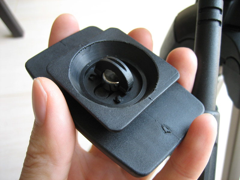 固定用のカメラネジの横の突起はビデオカメラ固定用のビデオボスです。押すと凹みます。