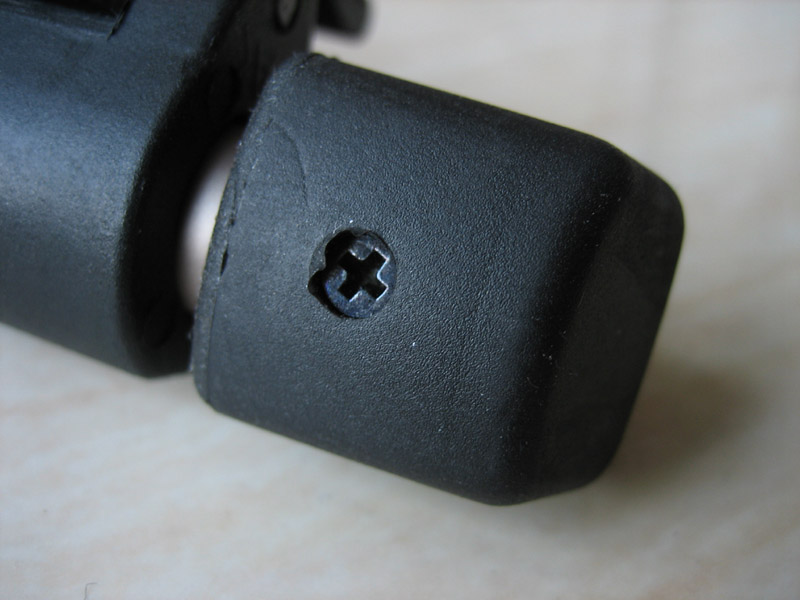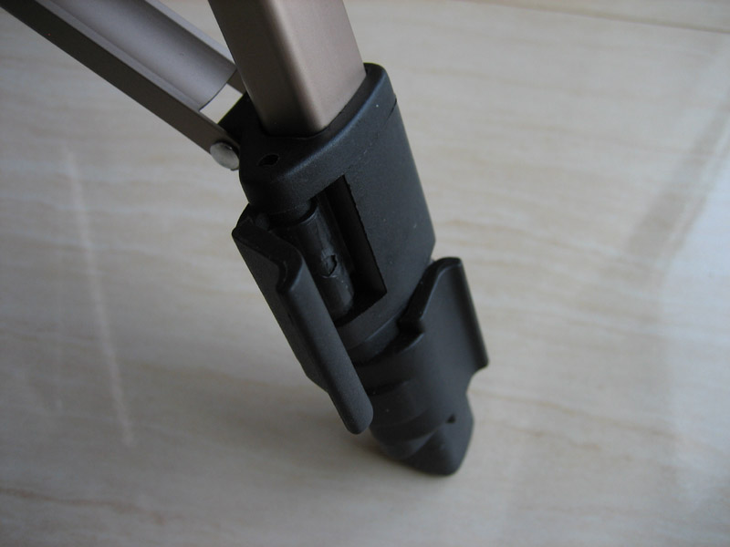 写真右(又は下):脚の先端についている石突きの部分はネジ留めされているので、いつの間にか取れて無くしてしまう様な事は無さそうです。