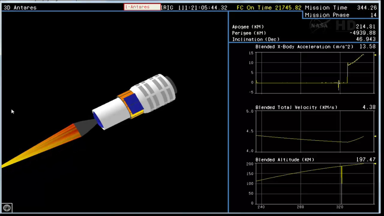 2013年4月22日の早朝に、アメリカの民間企業、Orbital Sciences社(オービタル サイエンシズ)のロケット、『ANTARES(アンタレス)』の初打ち上げがあり、その様子をNASA-TVで見たので、スクリーンショットを交えて軽く紹介したいと思います。