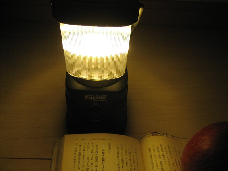 暗さはありますが、本を読むだけの明るさは確保出来ます。ランタンが眩しく感じる場合は、ランタンを逆さまにすると良いです。また、逆さまにする事で、より明るく本を照らすことが出来ます。