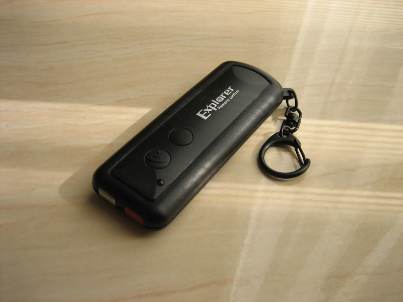 写真左(又は上):リモコンは、キーホルダーチェーンが付いているので、バッグや壁などにぶら下げておくことが出来ます。