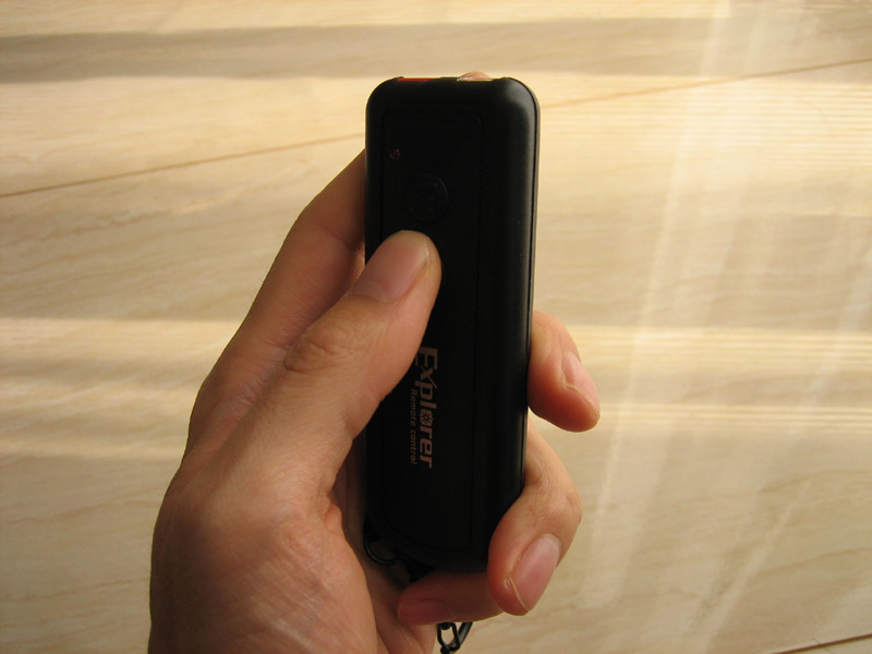 写真右(又は下):リモコンのサイズは、使いやすさを重視したサイズで手にしっくりときますが、キーホルダーとして腰やカバンにぶら下げるには大きいサイズかなと思いました。