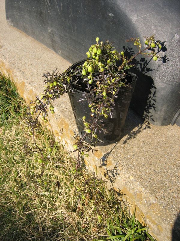 1年に50cmの伸びであまり成長は早くないタイプです。フェンスに這わせるには何年もかかりそうなのでこれは鉢植えにしました。