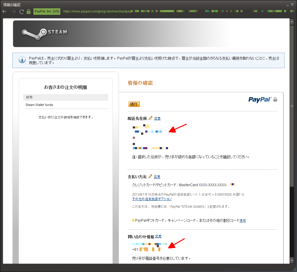 ※一度経験した事があるのですが、【続行】ボタンを押した後、PayPalウインドウがエラーで落ちた事があります。
