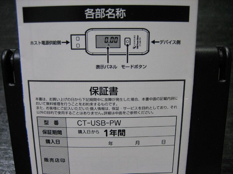 購入したのは、今年6月に発売されたCENTURY(センチュリー)のオリジナル商品、『USB Power Meter CT-USB-PW』です。値段はAmazonで2,709円でした。