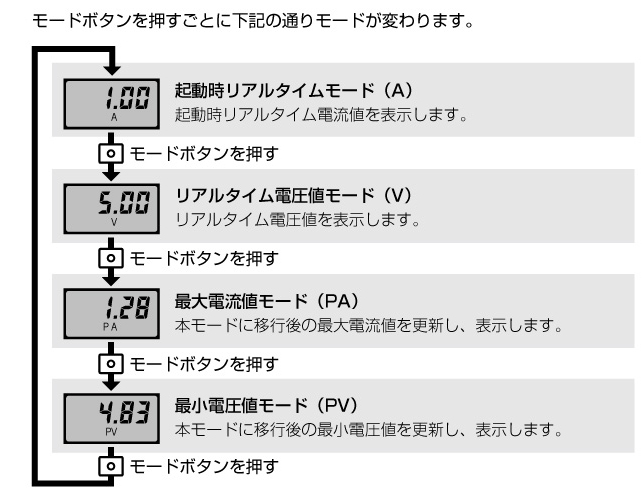 ・注意:0.05A 未満の電流値は計測対応しないため表示は 0.00A となります。