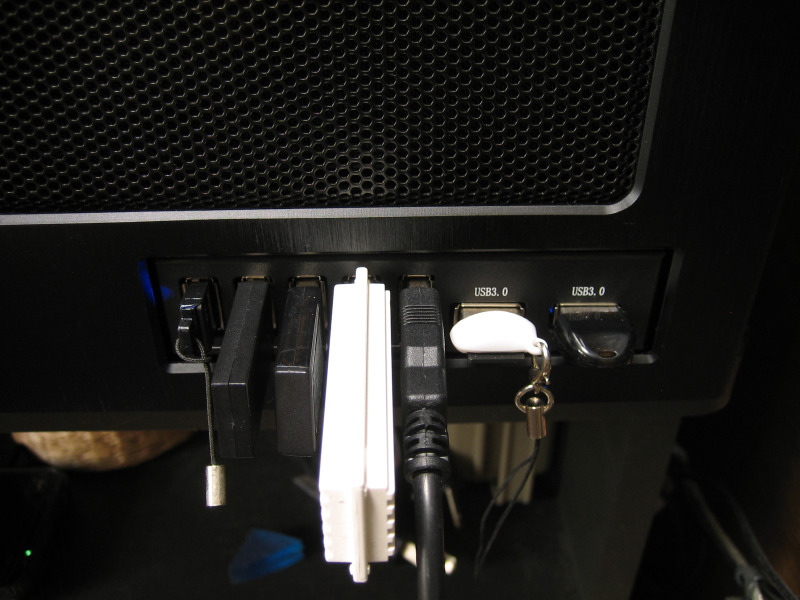 これで、フロントパネルのUSBポートが、PCケースのフロントUSBポートと合わせて9ポートに増えました。