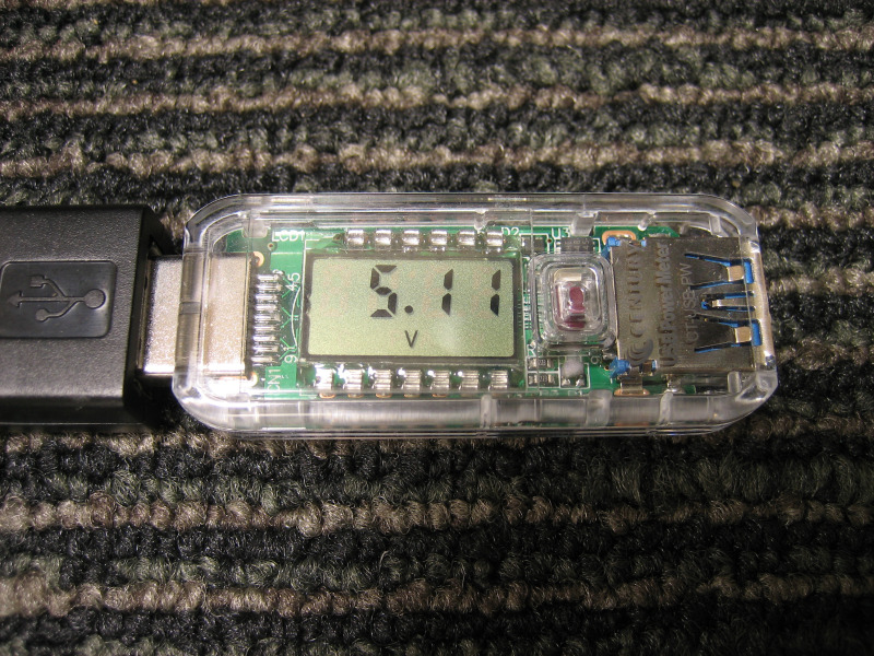USBに何も接続しない時と比べて、約0.10Vほど電圧が下がりましたが、この程度ならUSB機器の認識や動作に影響ありません。