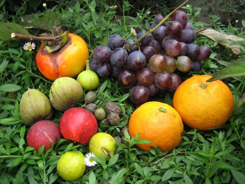 収穫したのは、カキ、ミカン、ブドウ(巨峰)、サルナシ(大実)、リンゴ(アルプス乙女)、イチジク(ホワイトスキア・ゼノア)、イエローストロベリーグアバです。