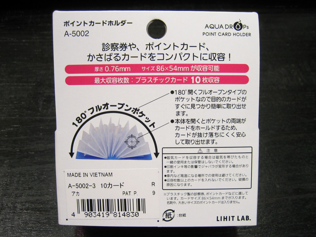 今回レビューするのは『LIHITLAB(リヒトラブ) ポイントカードホルダー A-5002』(10枚収納タイプ)です。