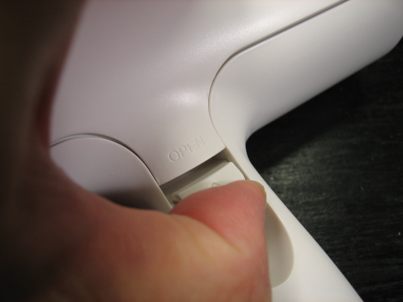 「▼」のレバーをOPENの方向に思いっきり引くのが正解なのですが、最初は力加減が分からず、力を入れ過ぎるとレバーが壊れてしまう様な気がして、悩んでしまった感じです。