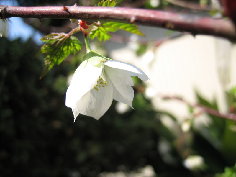野イチゴのマイラビットに続き、木イチゴのモミジイチゴの花も咲きました。