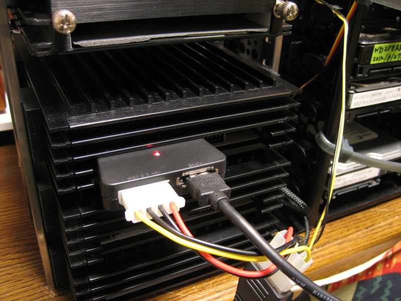 接続はeSATAで、マルチレーンやマルチポートプライヤを使わず、手動で利用したいHDDの接続を1つずつ切り替える単純なシステムとなります。