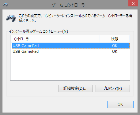 また【USB GamePad】があり、コントローラーを繋いで動作確認が出来ているのにも関わらずゲームで操作が出来ない場合は、ゲーム自体が対応していない可能性があります。