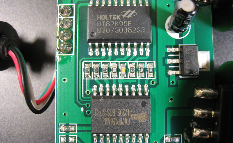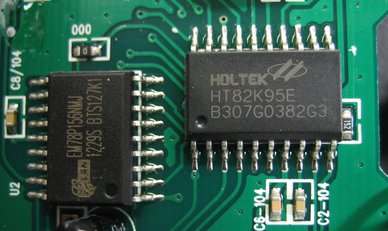 2つのICは、HOLTEKのHT82K95Eと、ELANのEM78P156NMJというチップです。