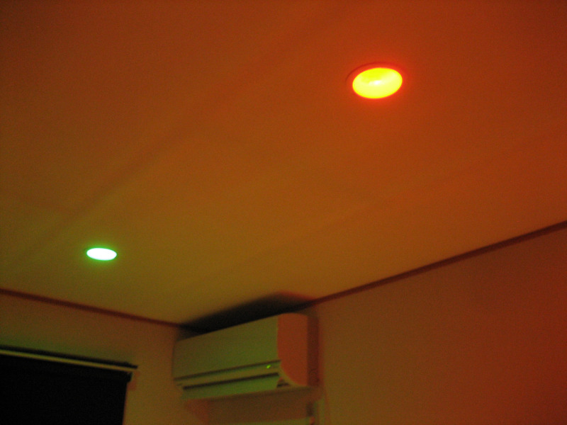 赤色の部屋にした時、まず、懐かしの都市伝説『赤い部屋』を連想してしまいましたが、まじめに使い道を考えると、赤色の光は夜目への影響が少ないので、部屋で流星群観測をする時に使えそうだなと思いました。