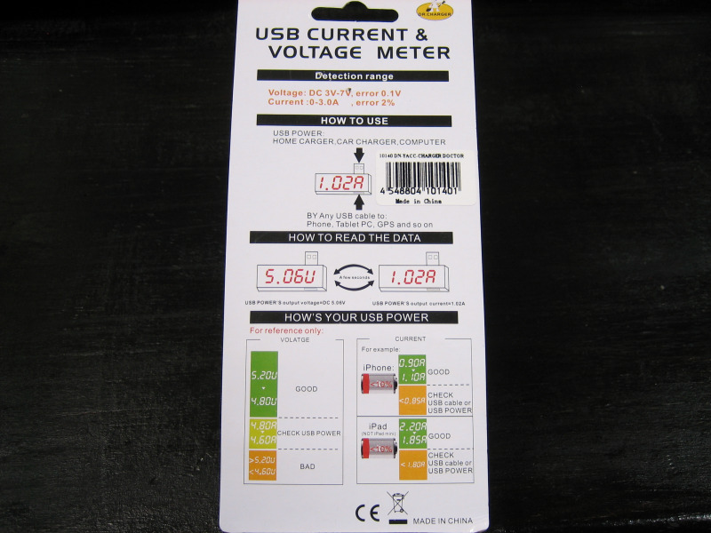 購入したのは、上海問屋で販売されている『USB電流&電圧チェッカー DN-10140』です。